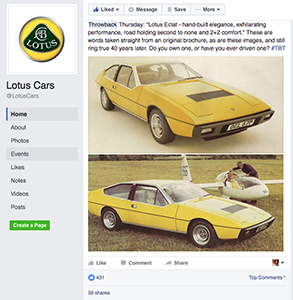 Developed the audience-centric strategy, delivered the ideas and created the copy for a two-month trial take over of Lotus Cars’ social media channels, including Facebook, Twitter, Instagram and YouTube.